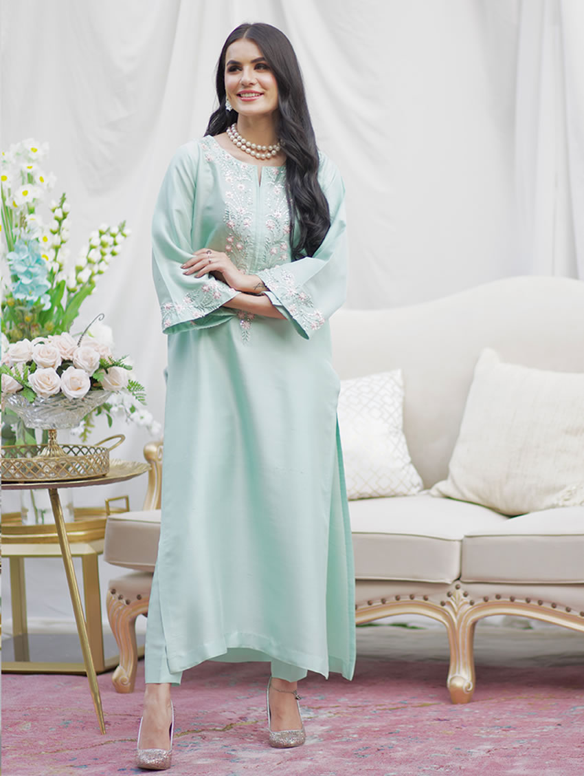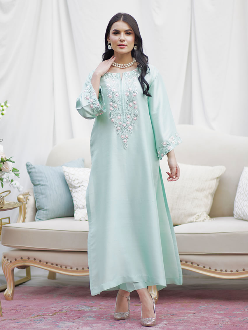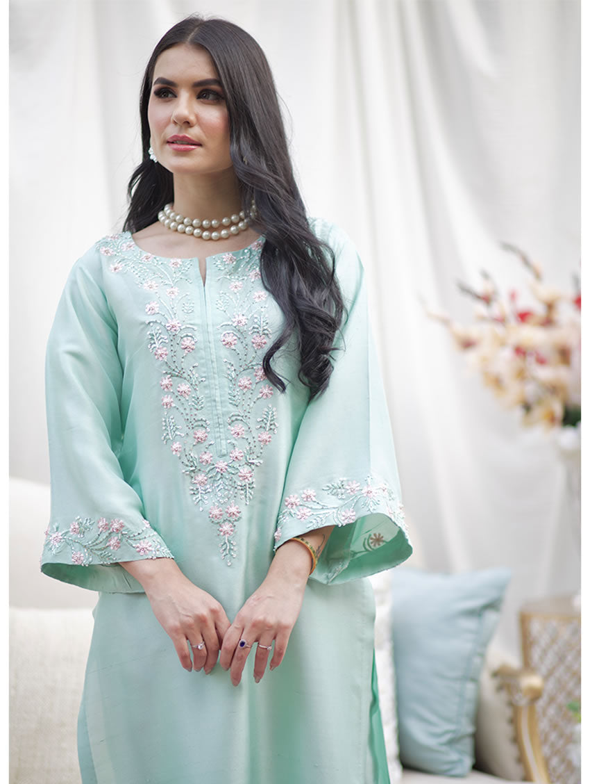 • Pure raw silk 80 gm Shirt embroidered and hand done embellishments