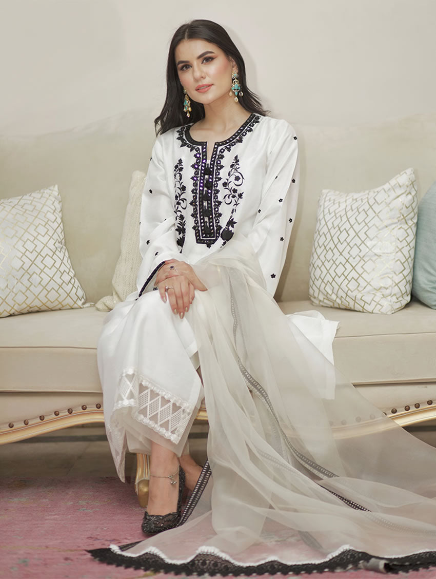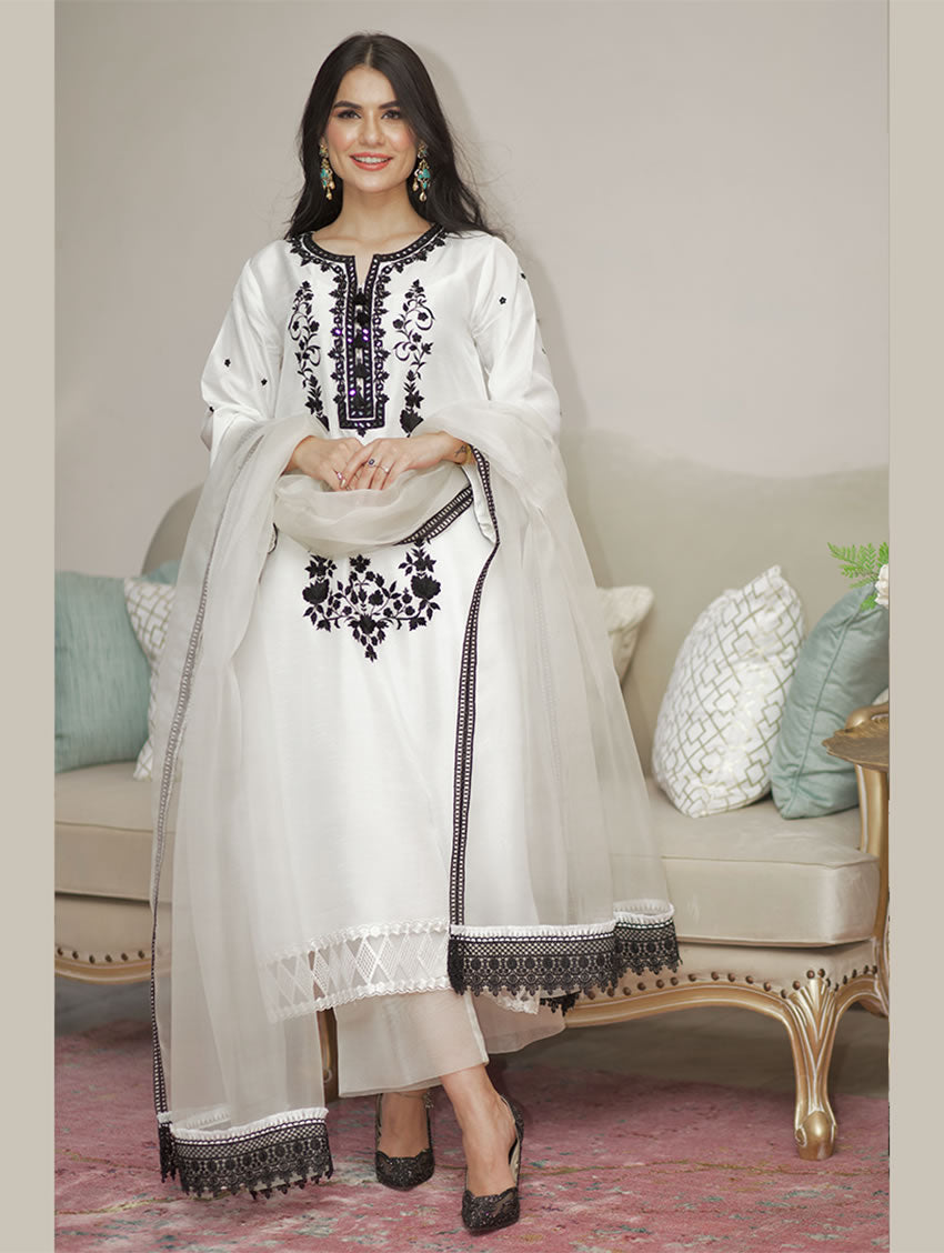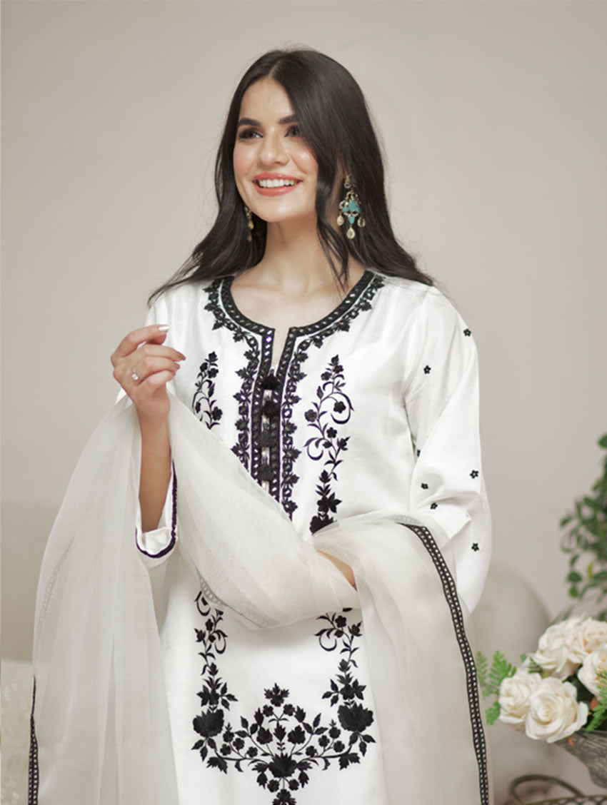Shirt mirror embroidered, Pure raw silk 80Gm