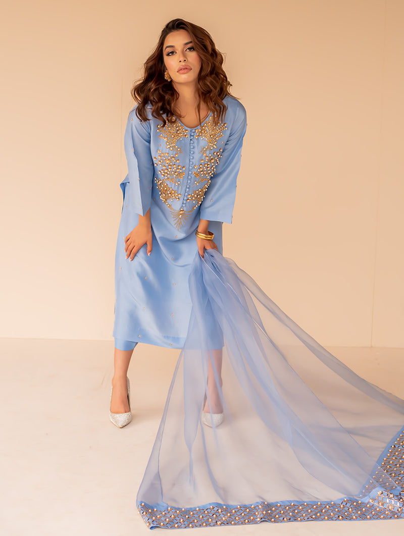 Beautiful Multicoloured Pure Silk Hand Embroidered Kurta.