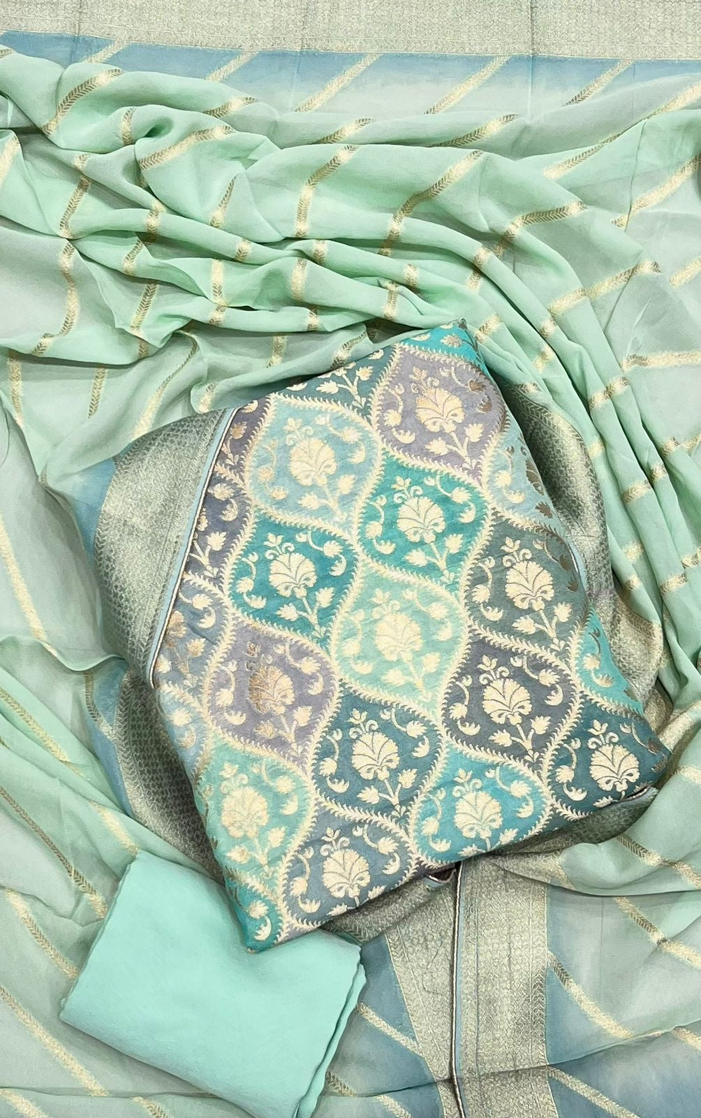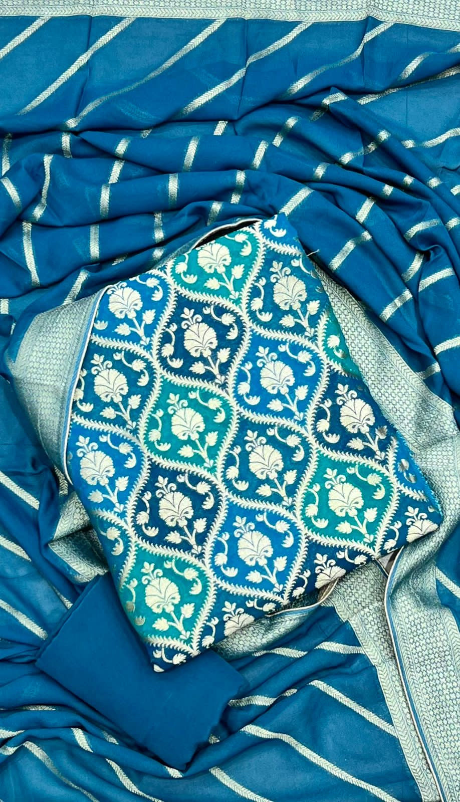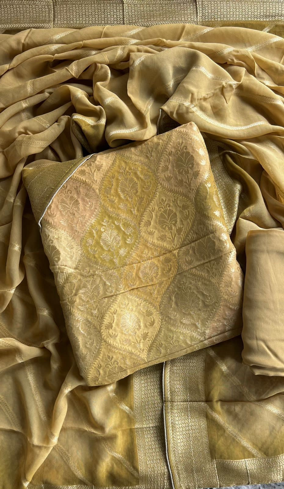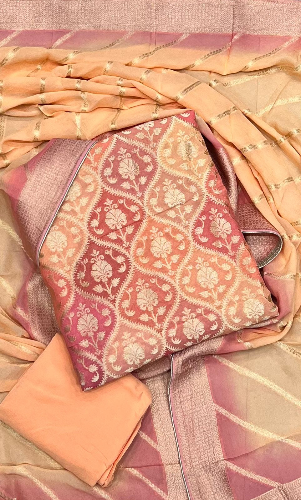 Beautiful viscose Georgett position dyed banarsi shirt & Dupatta ,Along with crape bottom. 3 Pc