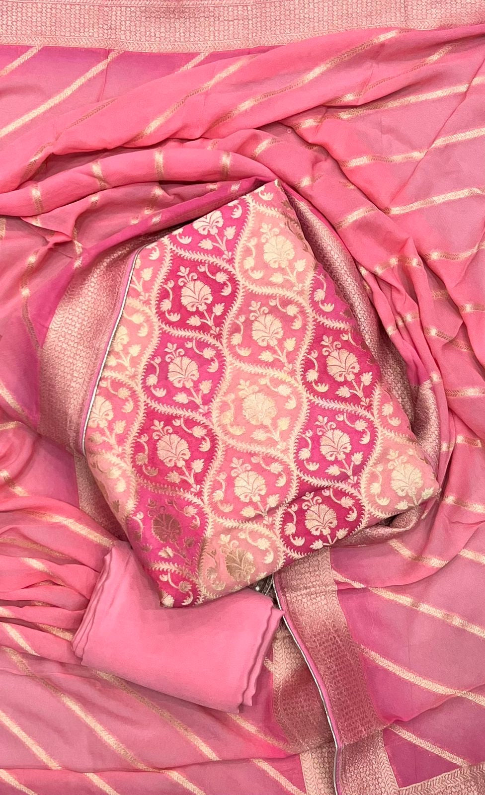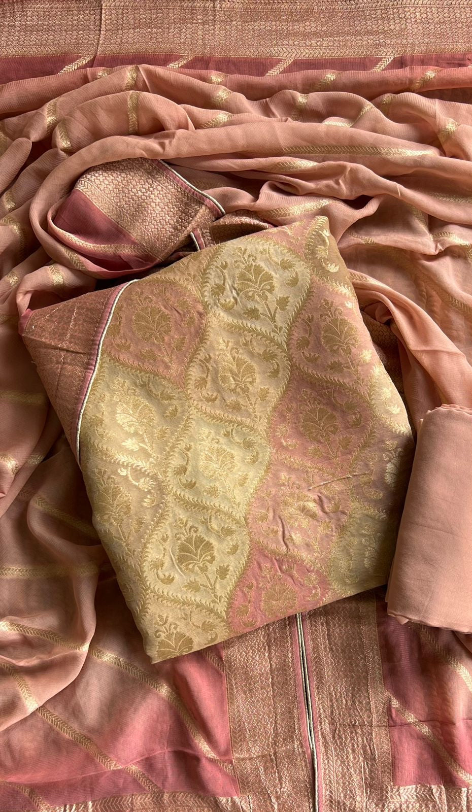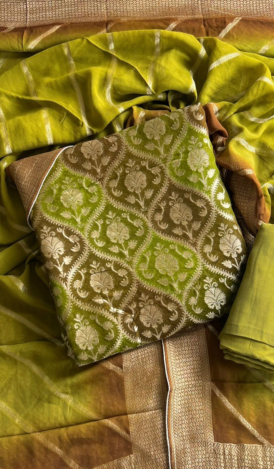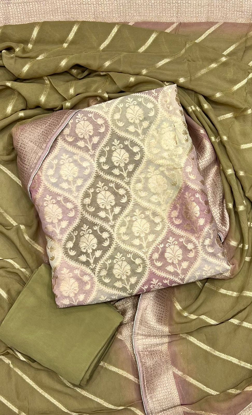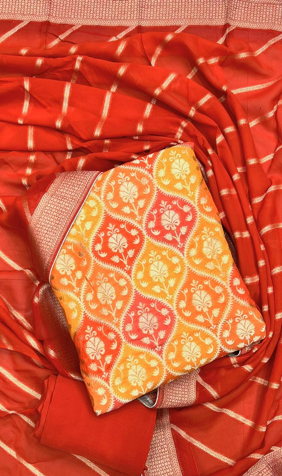 Beautiful viscose Georgett position dyed banarsi shirt & Dupatta ,Along with crape bottom. 3 Pc