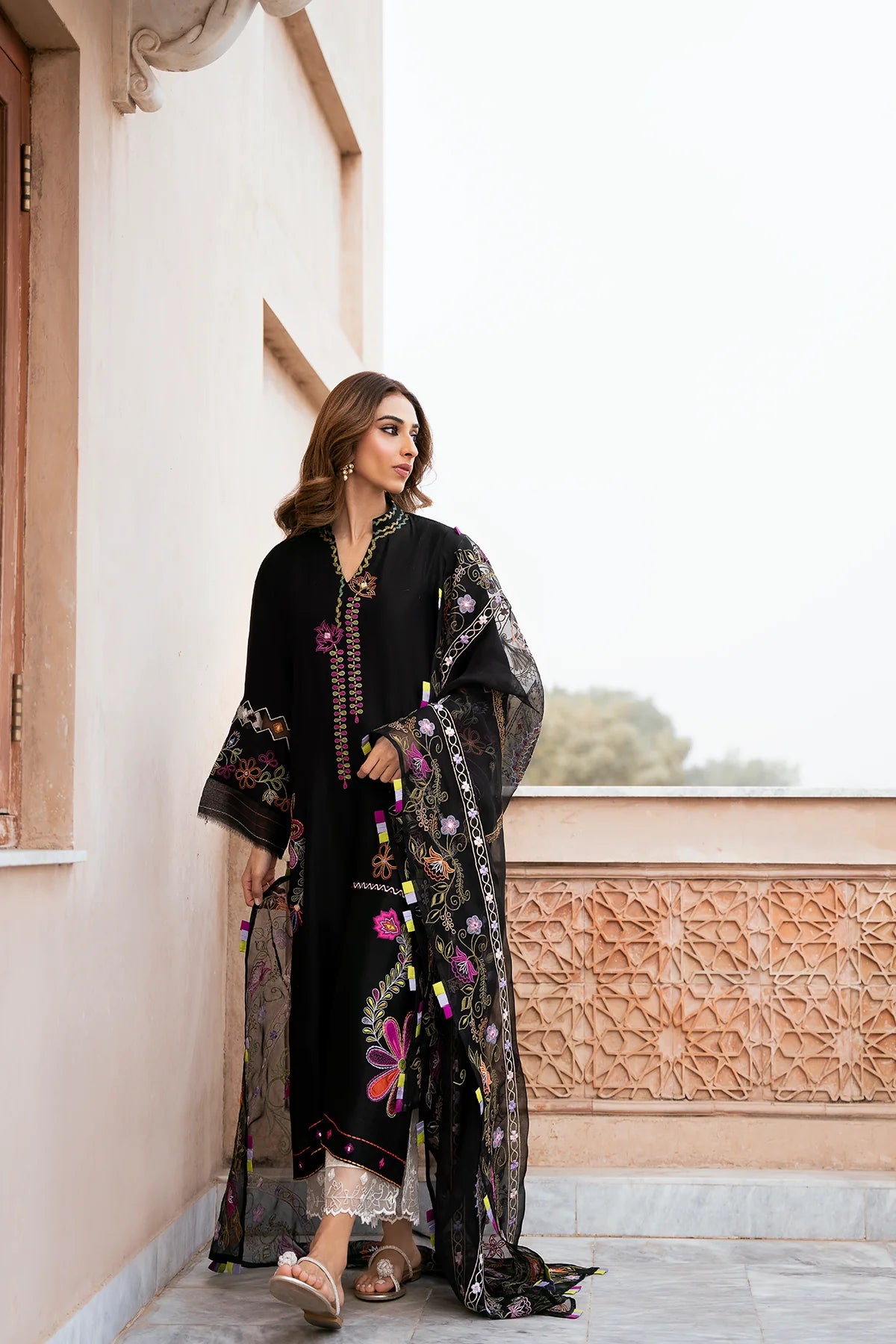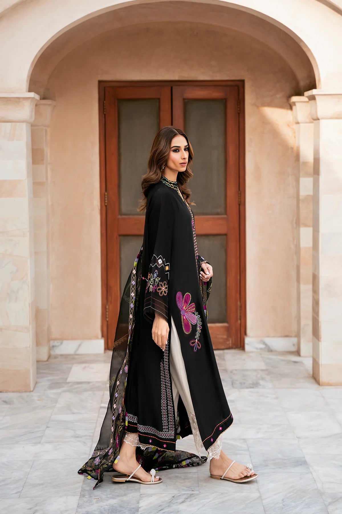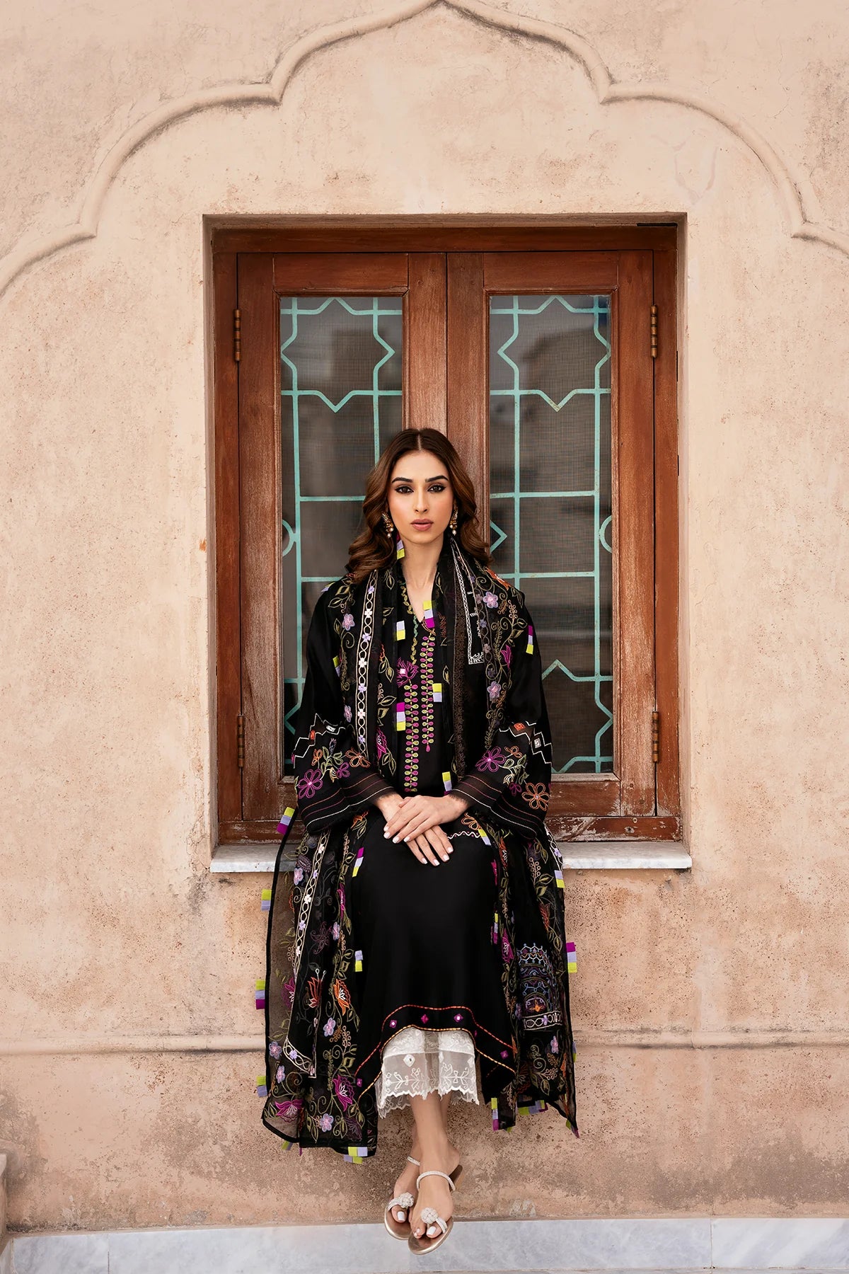 G H A Z A L is a stunning piece with beautiful tailoring and flattering cuts, perfect for both brunches and dinners. The intricate embroidery adds an elegant touch, while the mirror work creates a captivating sparkle. Vibrant appliqués bring a lively pop of color, making this outfit a fabulous choice for the festive celebrations