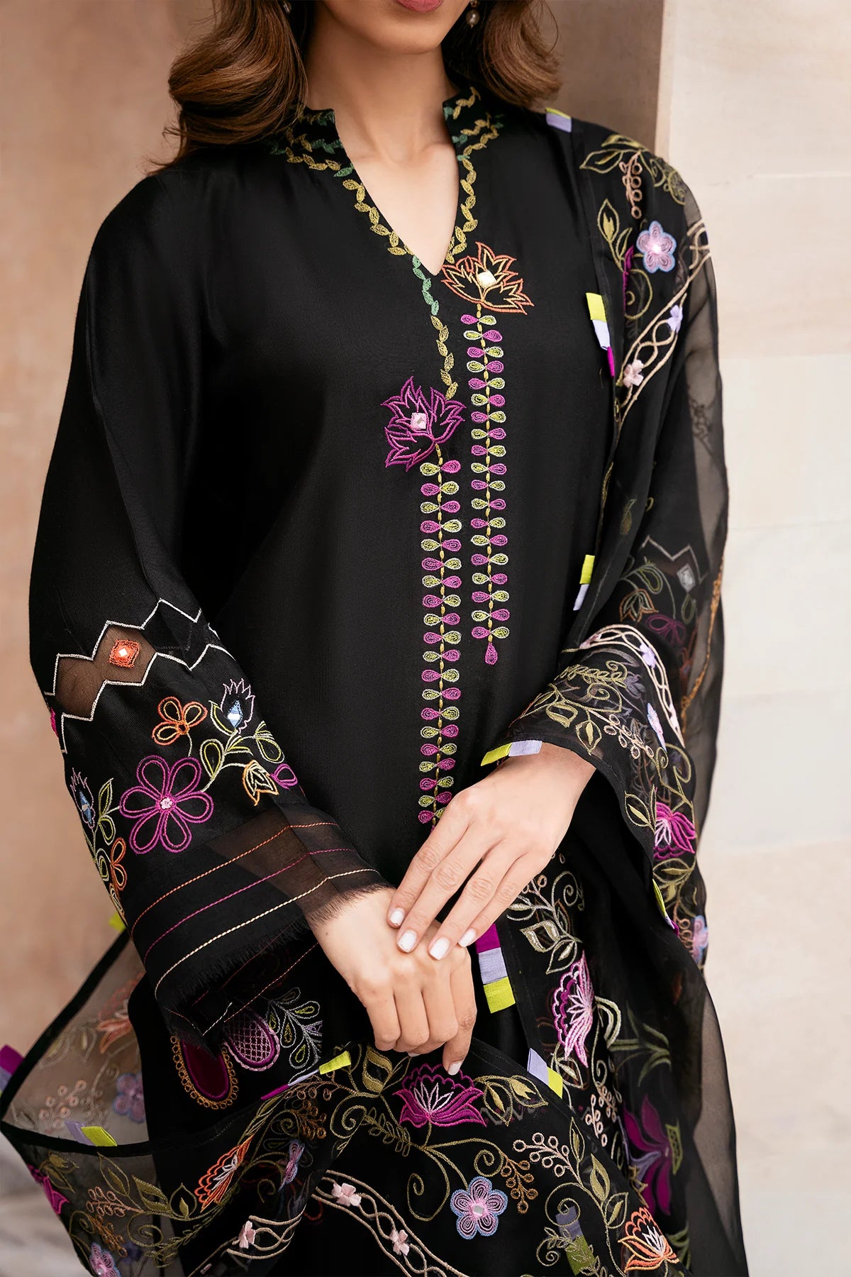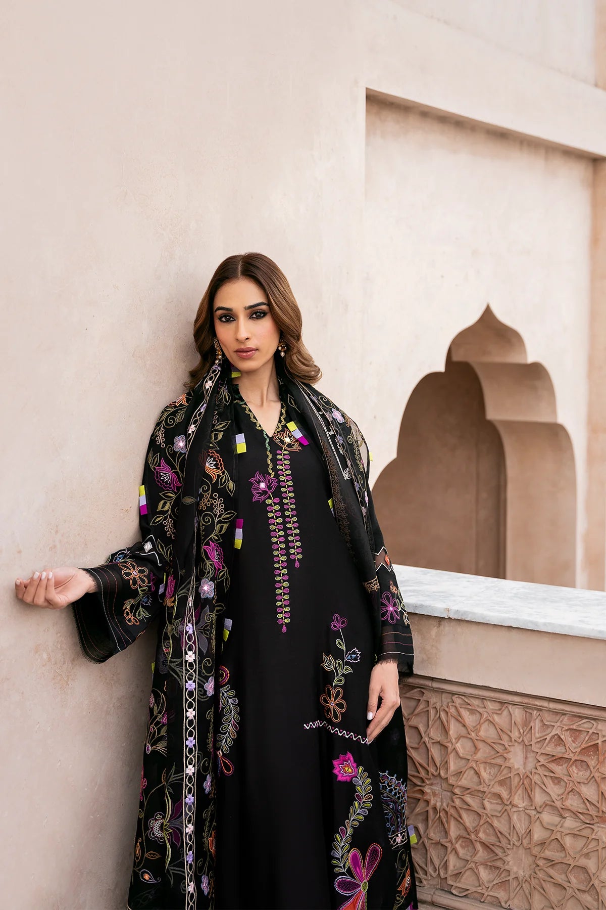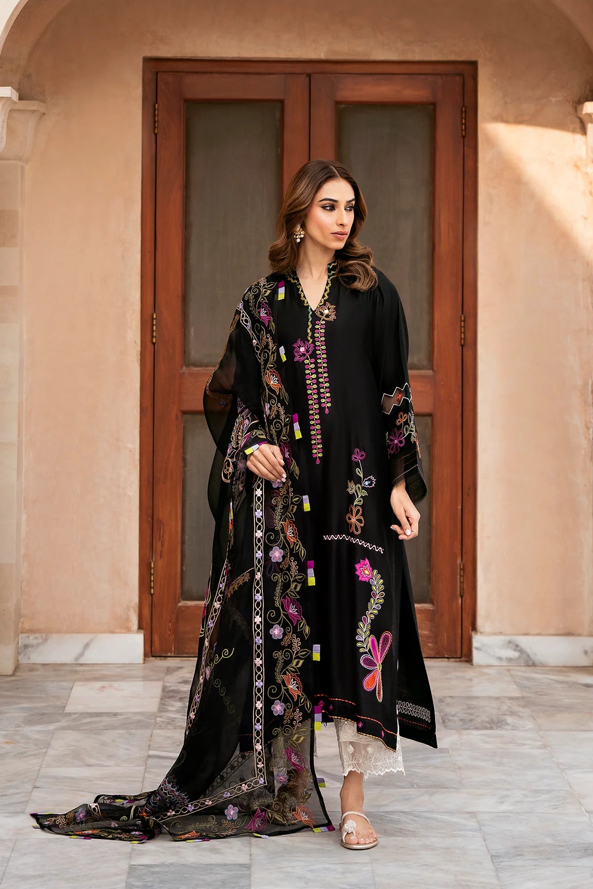 G H A Z A L is a stunning piece with beautiful tailoring and flattering cuts, perfect for both brunches and dinners. The intricate embroidery adds an elegant touch, while the mirror work creates a captivating sparkle. Vibrant appliqués bring a lively pop of color, making this outfit a fabulous choice for the festive celebrations