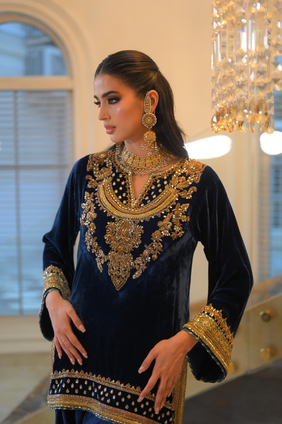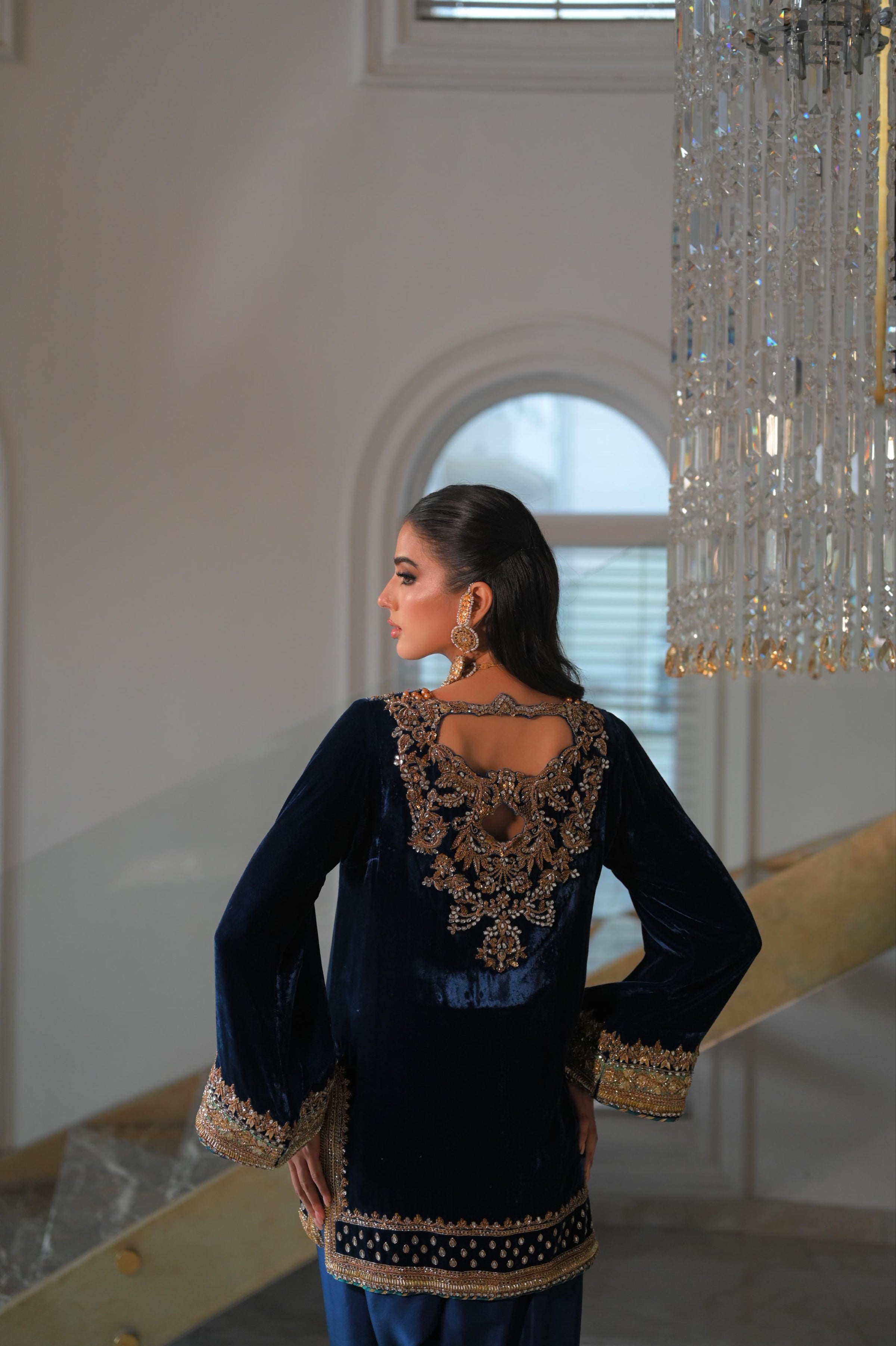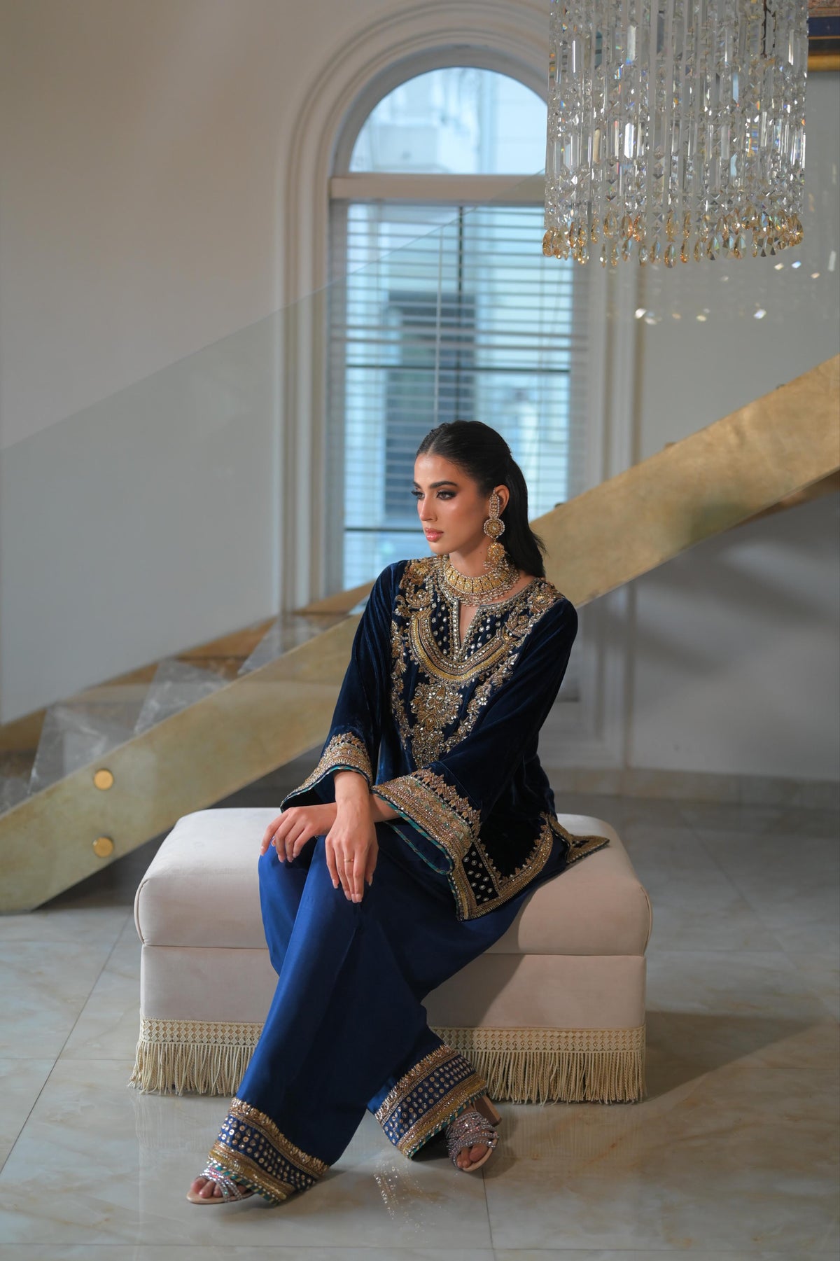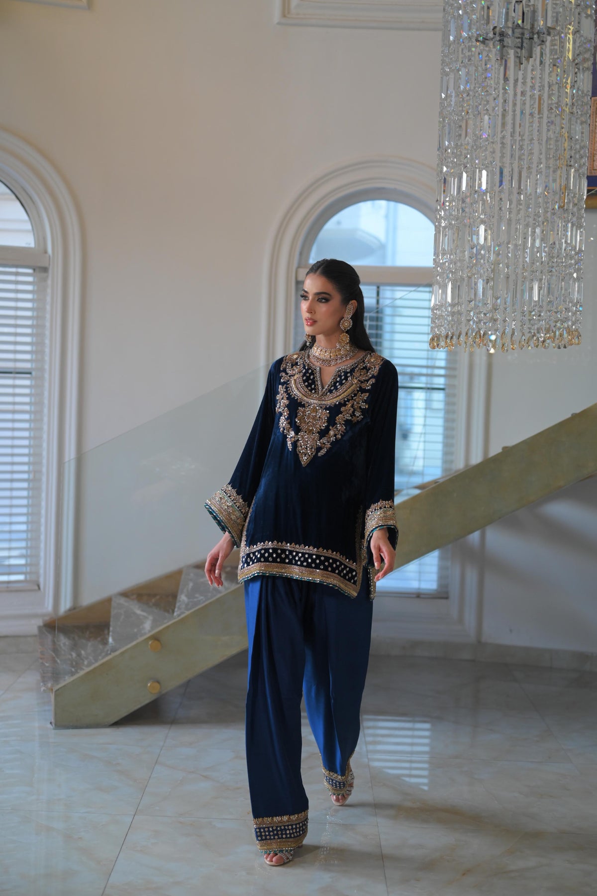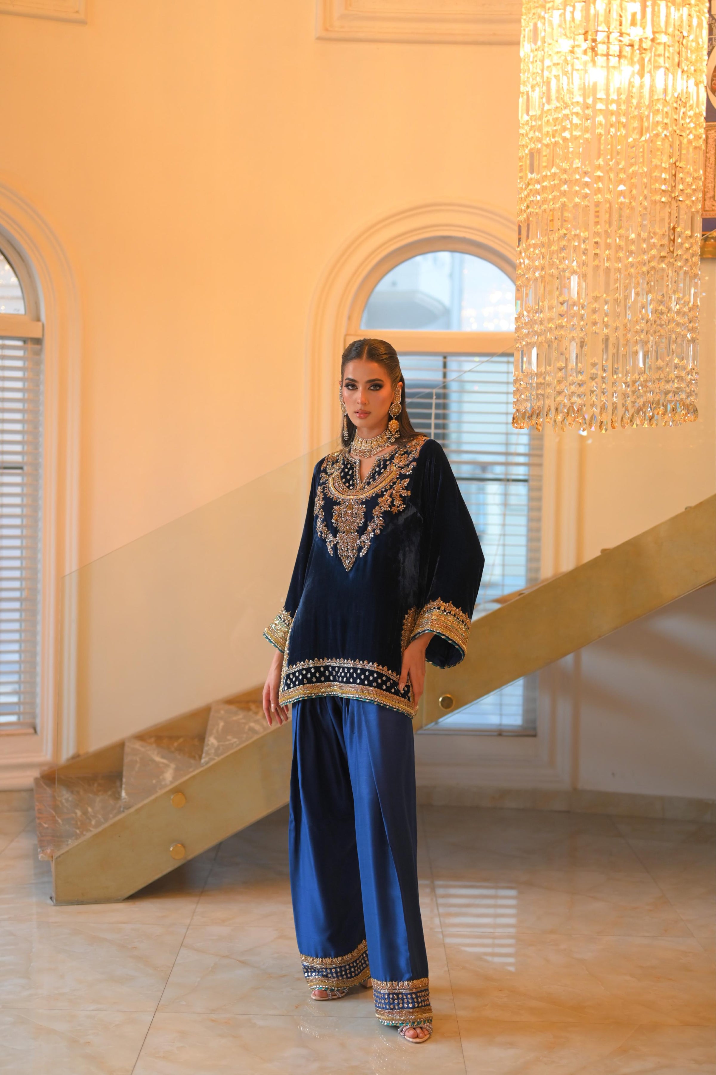 Pure french velvet silk shirt, beautifully hand embroidered. Bottom pure raw silk embroidered too.