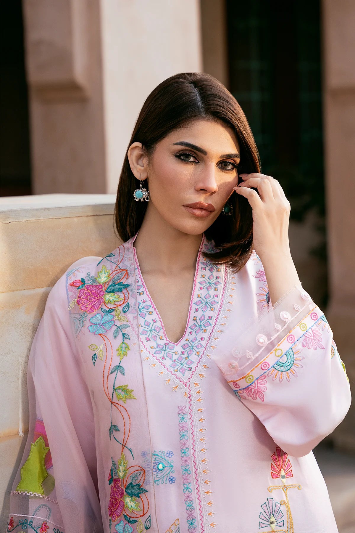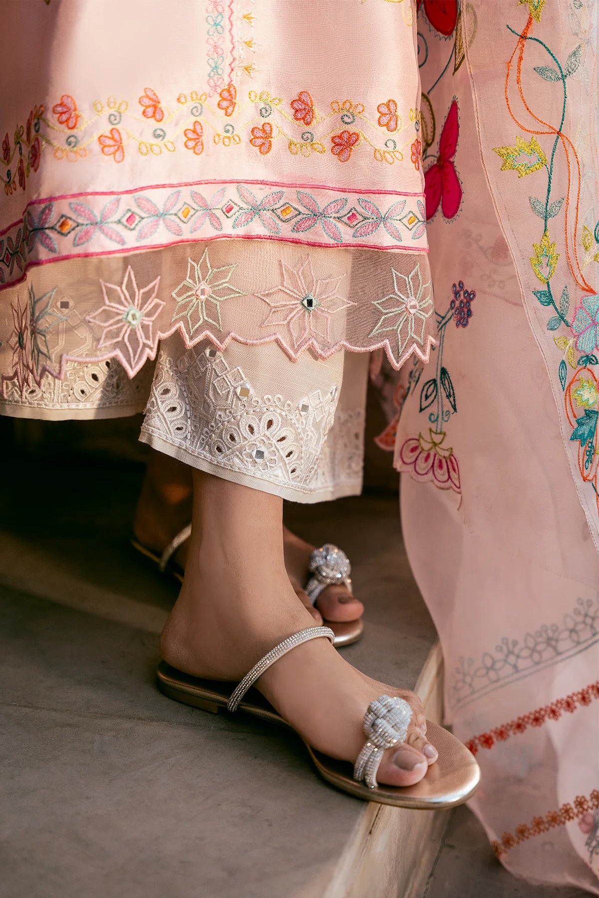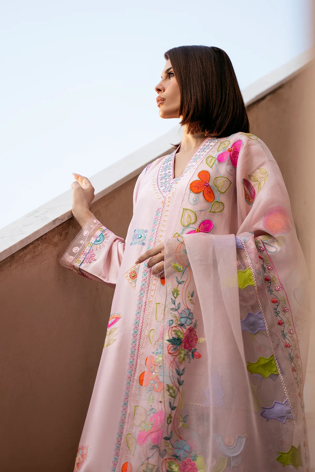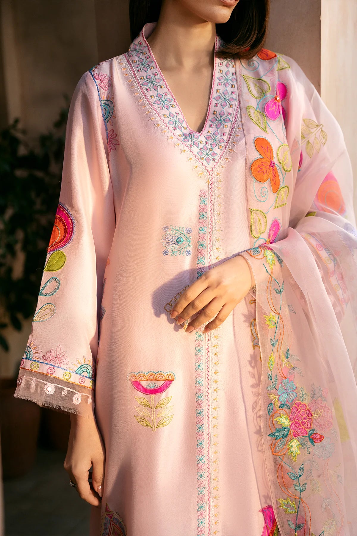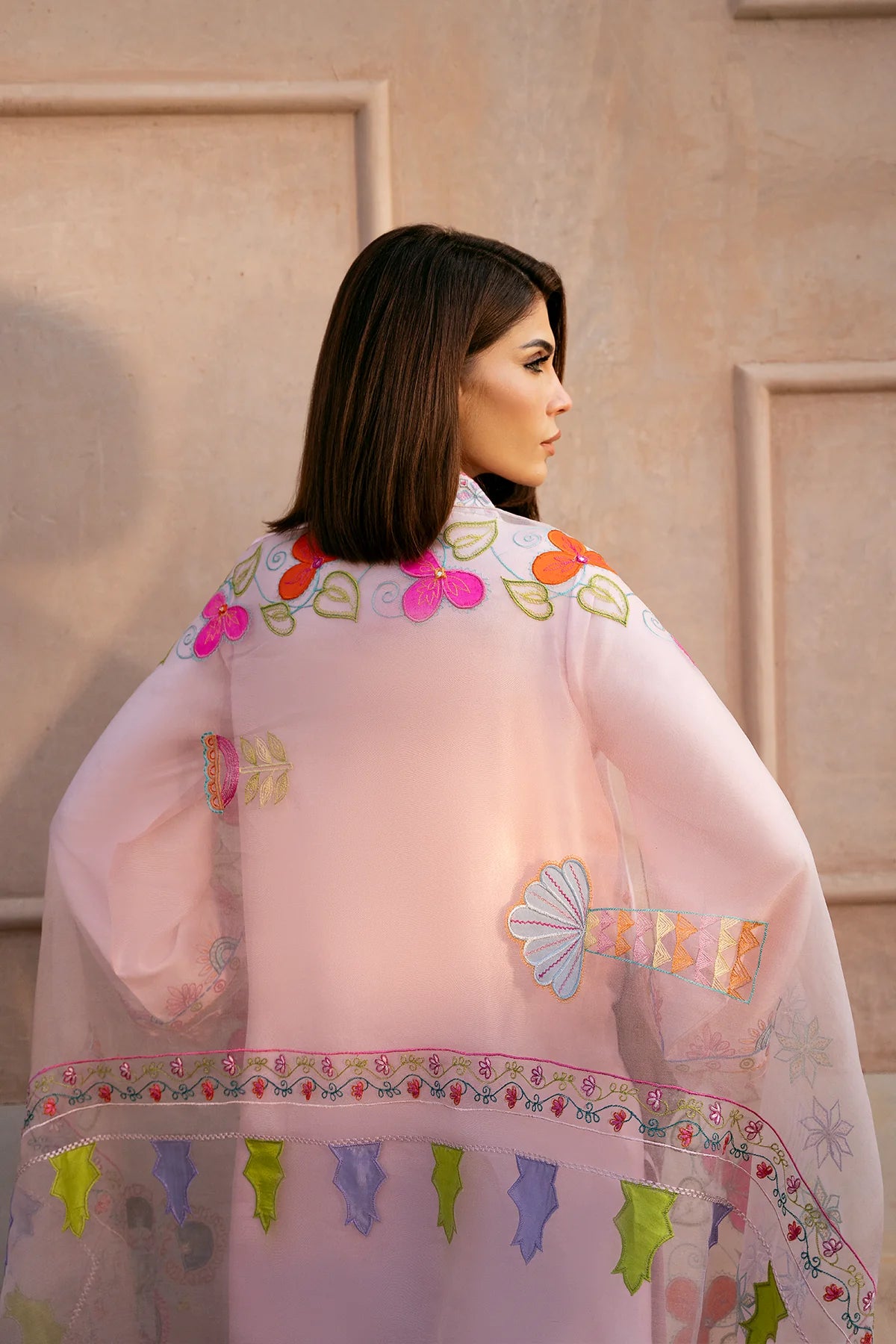 S H I R I N , is a stunning piece with beautiful tailoring and flattering cuts, perfect for both brunches and dinners. The intricate embroidery adds an elegant touch, while the mirror work creates a captivating sparkle. Vibrant appliqués bring a lively pop of color, making this outfit a fabulous choice for the festive celebrations