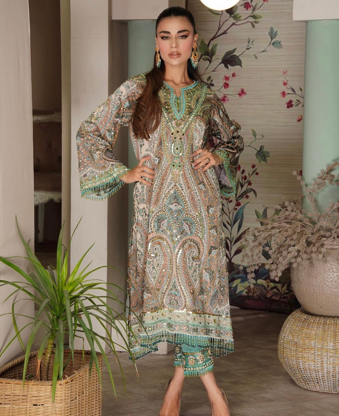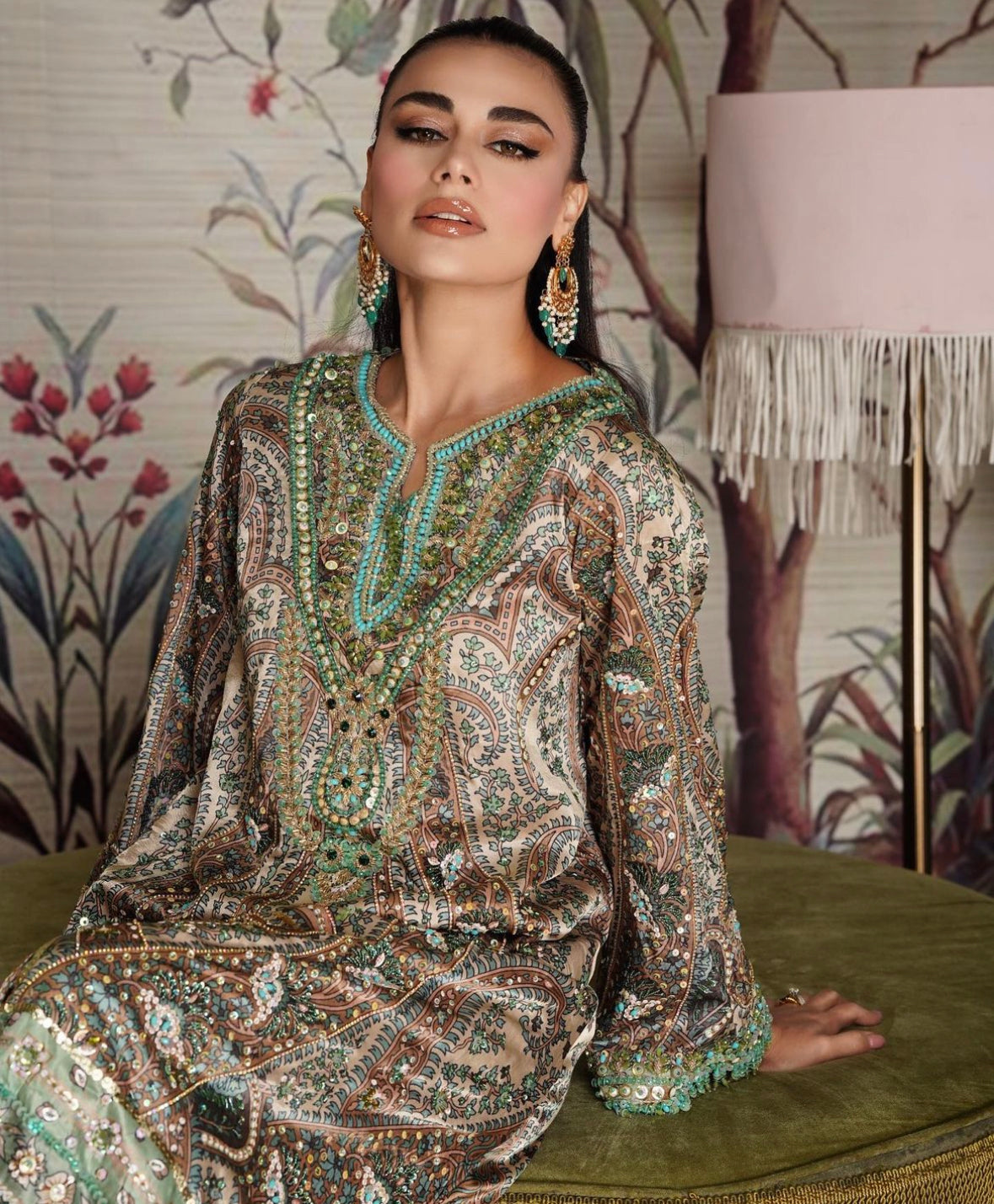 Step into elegance with this exquisite pure silk hand-embroidered Kaaftan. Crafted with love and attention to detail, this stunning piece is a true work of art.