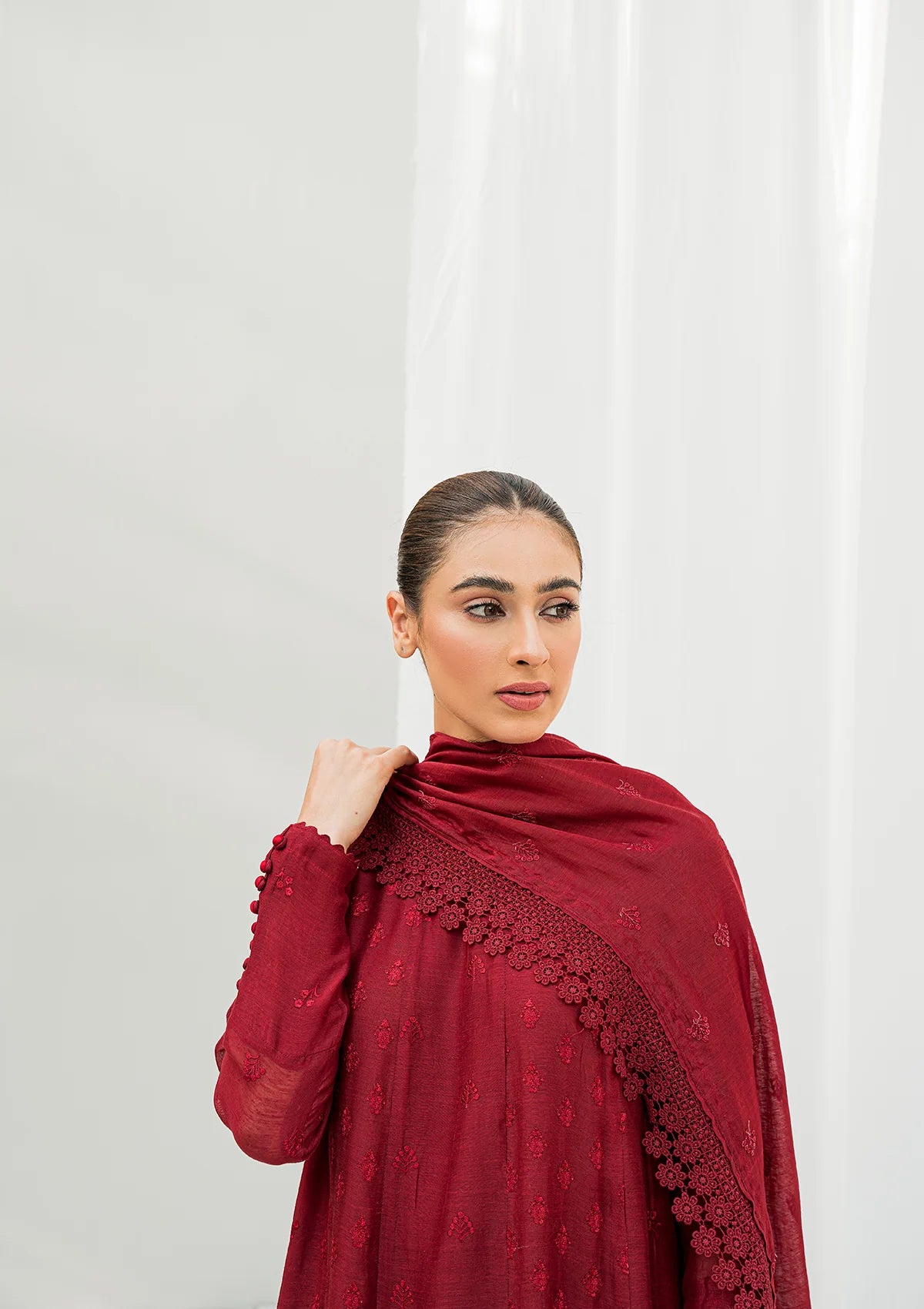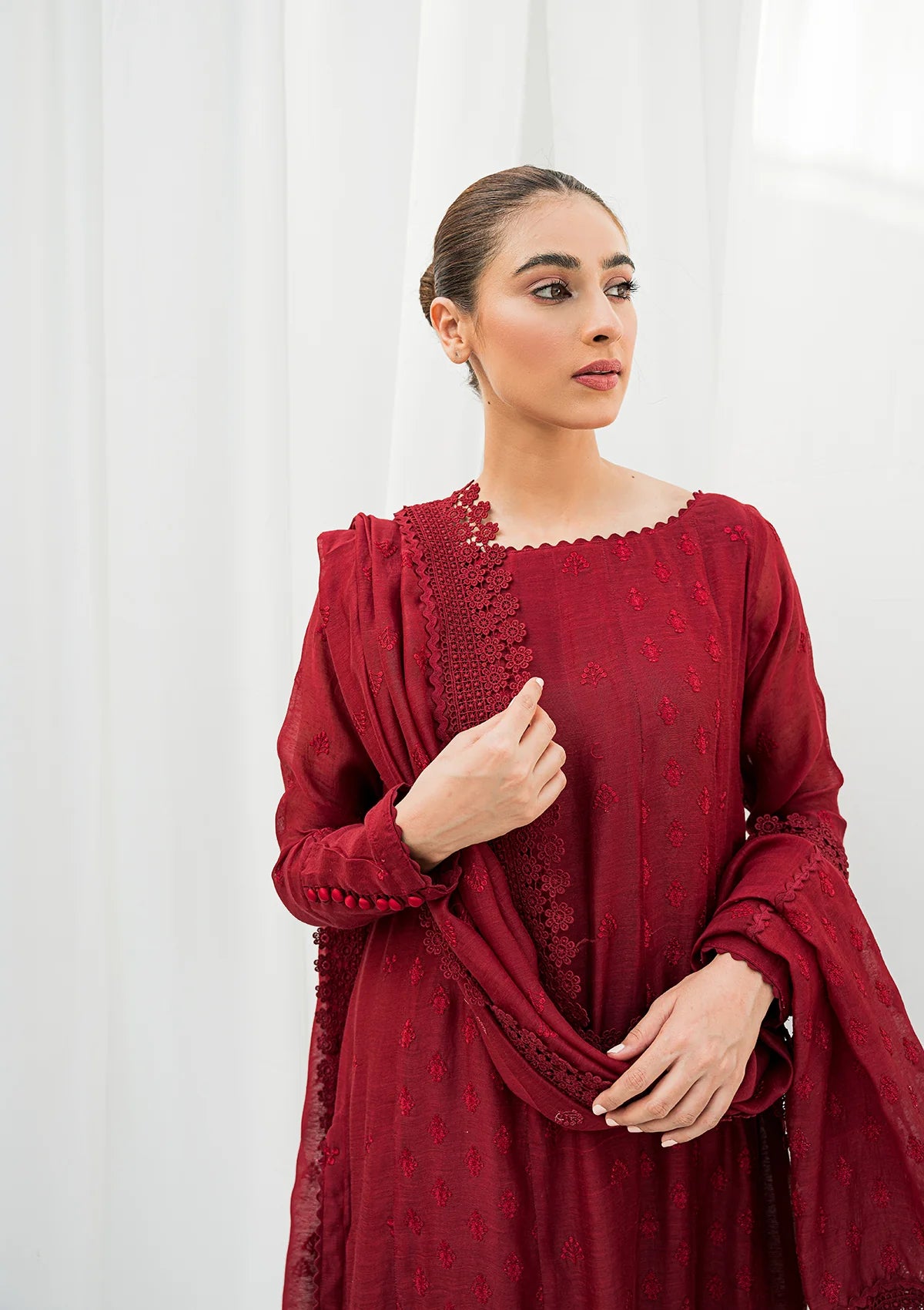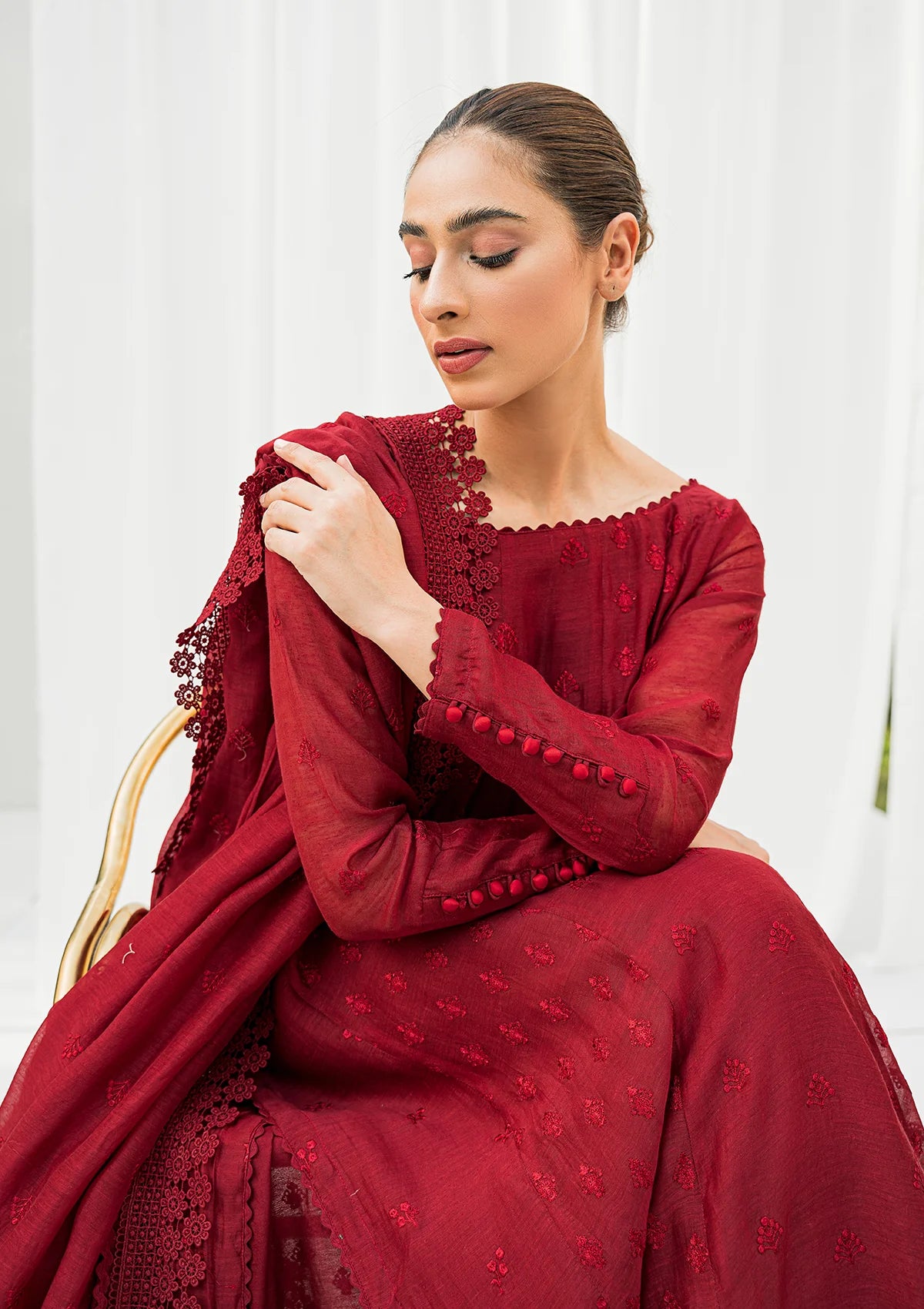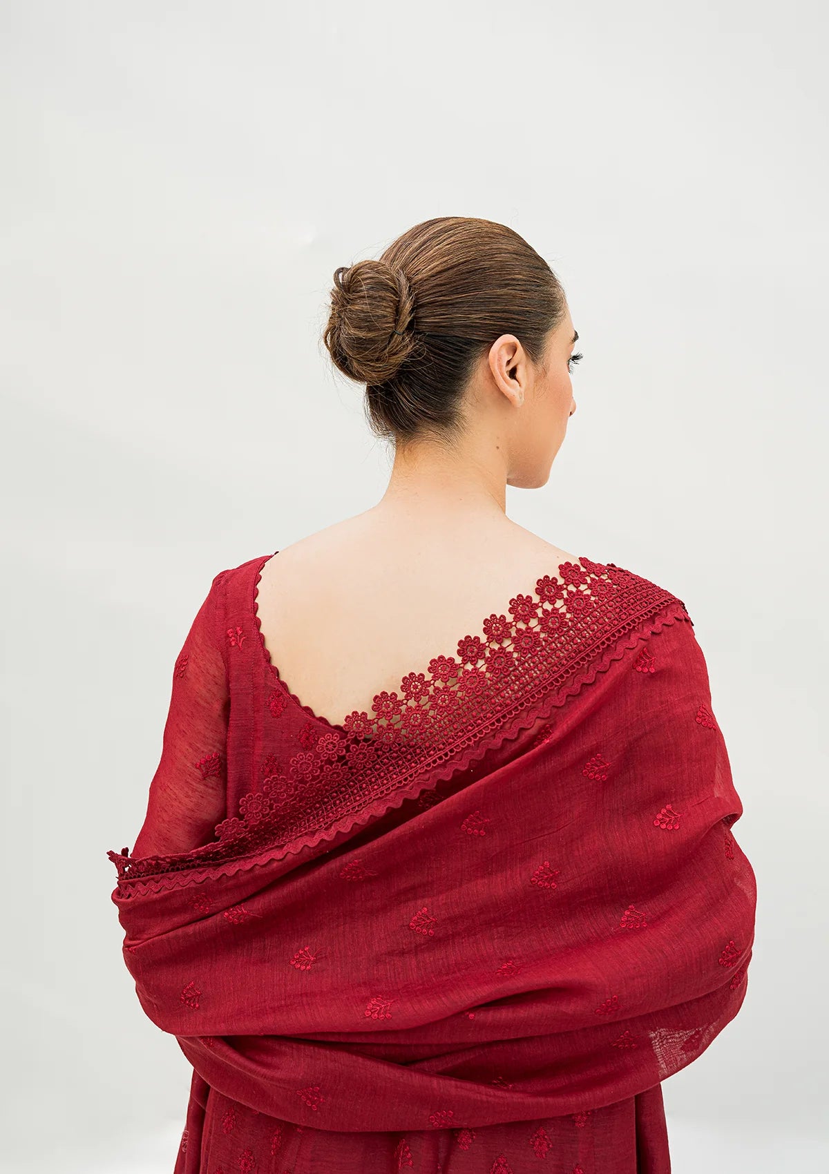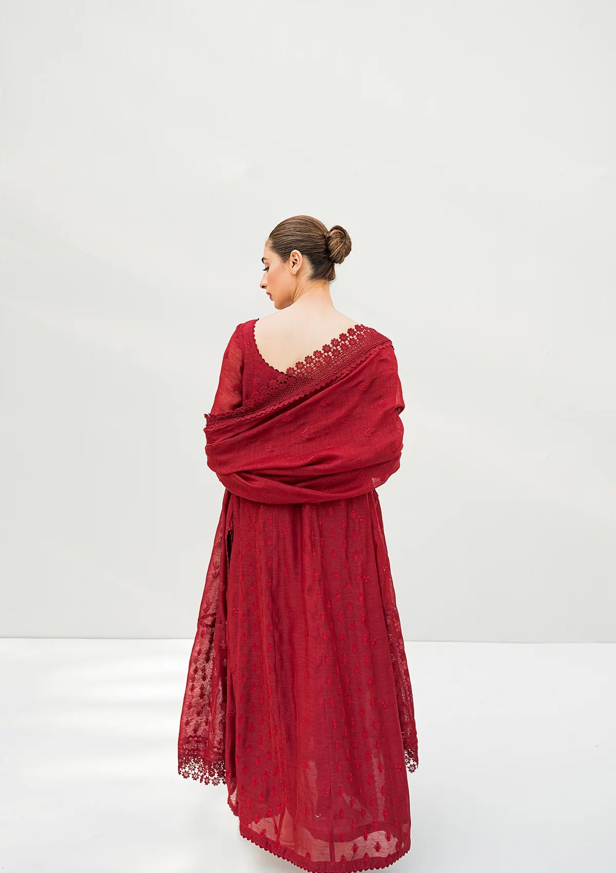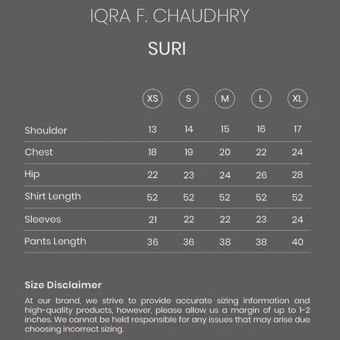 Suri comes as a 3-piece outfit, finished off with lace detailing. Duppatta & A-line shirt is embroidered lawn organza, with raw silk pants. The finishing lace can vary depending upon the availability. Color is customisable.