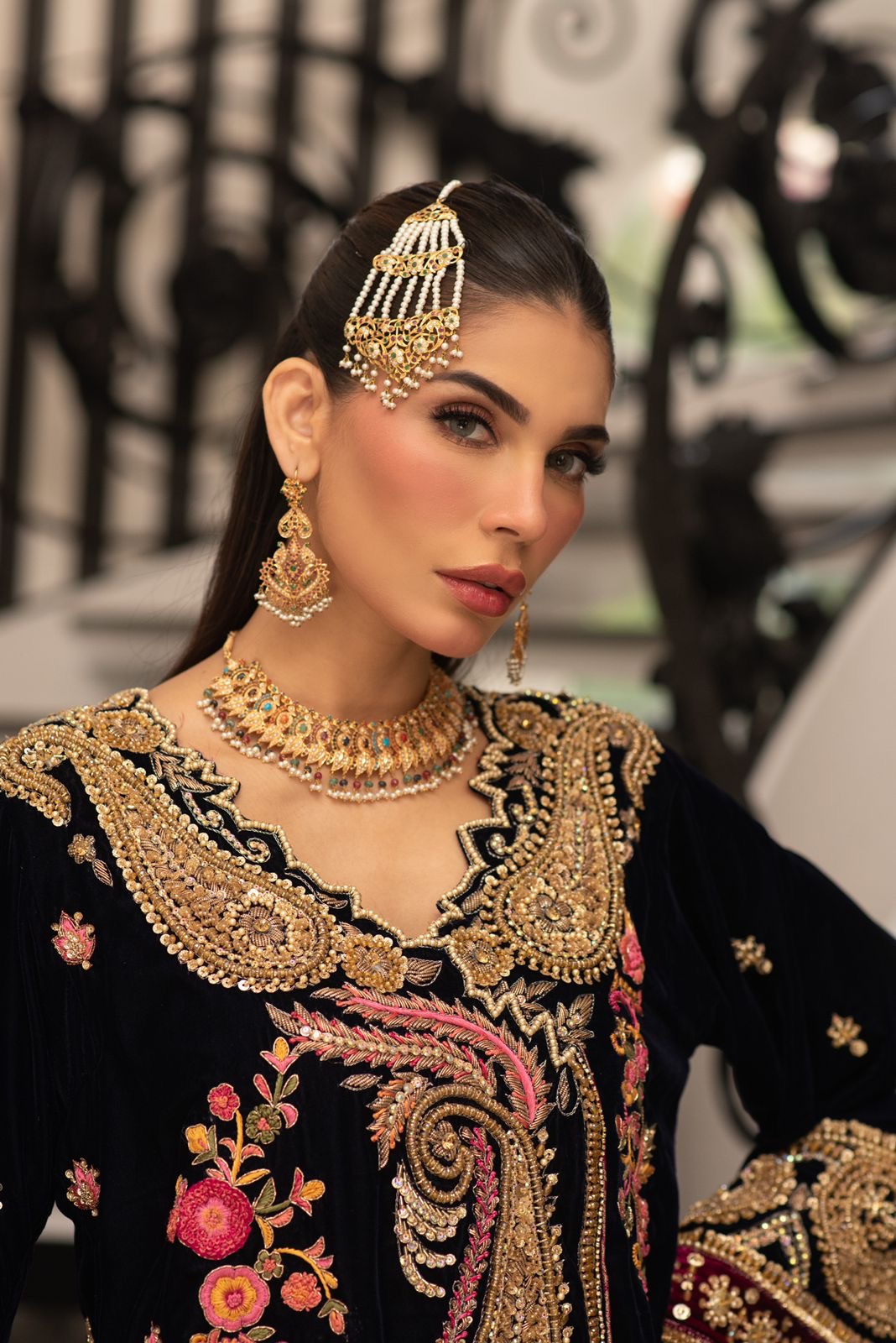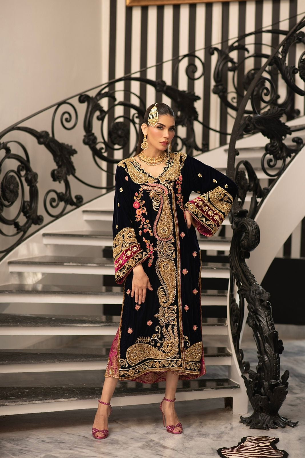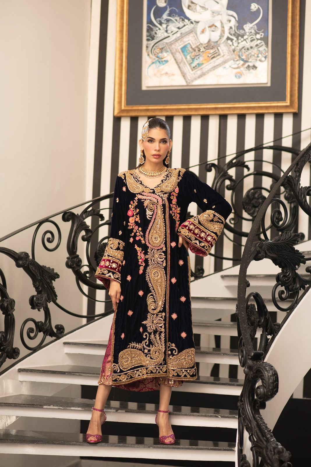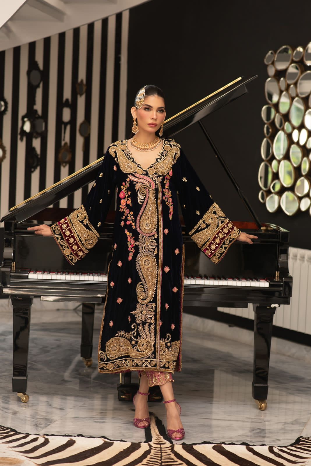Unveiling the epitome of elegance and craftsmanship! Behold this exquisite ensemble featuring a pure French velvet hand-embroidered shirt paired with pure Jamawar embroidered pants. Every stitch tells a story of artistry and tradition, meticulously crafted to perfection.
