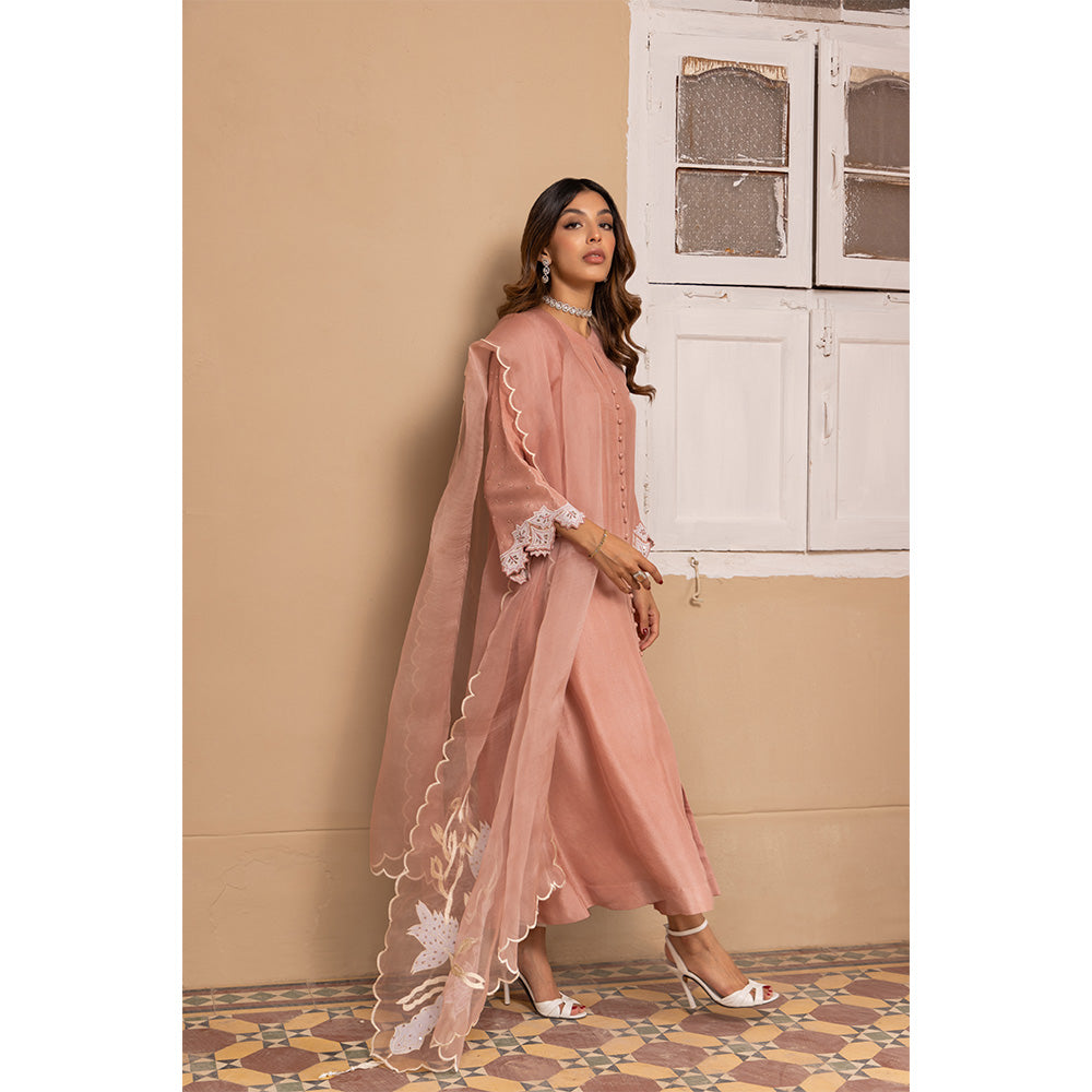 Our Pastel Pink Pure Raw Silk Shirt Is Inspired Front Open Shirt . The Sleeves Are Adorned With Intricate Embroidery And Hand Touching. The Pure Organza Dupatta With Embroidery And Handwork Gives Us The Major Look. Paired With Straight Pants.